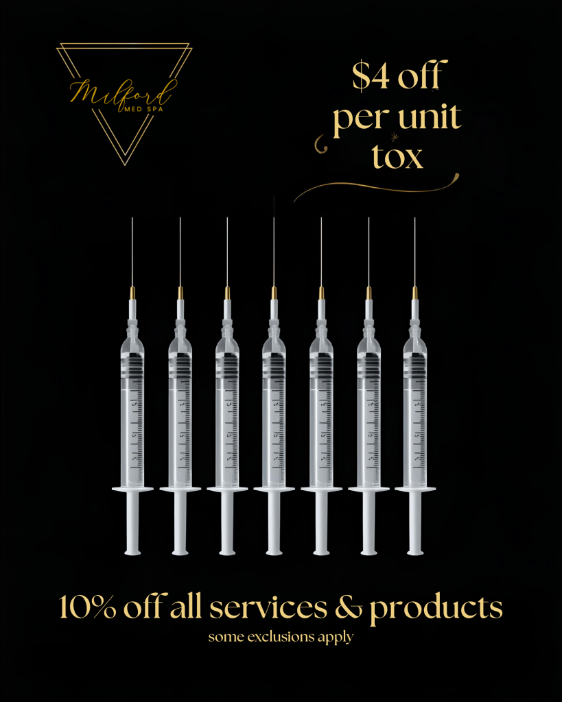 Join a Glow Getter Membership at Milford Med Spa and receive $4 off per unit of tox all year, 10% off services, AND a complimentary Glow Benefit with January–February enrollment.